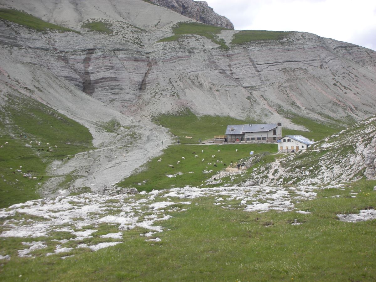 Eine mittelschwere Etappe mit moderater Höhenänderung, die den Sentiero Italia CAI im Puez-Massiv im Naturpark Puez Odle führt. Vom Dorf Selva di Val Gardena geht es weiter zum Ausbildungszentrum der Carabinieri und dem Weg Nr. 14, der durch das wunderschöne Vallunga verläuft. Man wandert umgeben von Felswänden, wo es nicht schwer ist, einen Falken oder Steinböcke zu entdecken. Nach etwa zwei Stunden fast ebenem Wandern beginnt der Aufstieg zur Hütte über einen Schutthang, wo die Edelweiß die Hauptrolle spielen. Nach etwa einer weiteren Stunde Aufstieg erreicht man das Hochplateau, auf dem die Hütte Rifugio Puez im Besitz des CAI Sektion Bozen liegt.